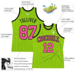 Custom Neon Green White Pinstripe Pink-Black Authentic Basketball Jersey