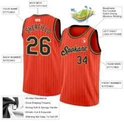 Custom Orange Black Pinstripe Black-Old Gold Authentic Basketball Jersey