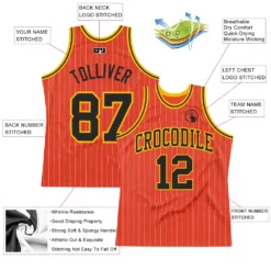Custom Orange White Pinstripe Black-Gold Authentic Basketball Jersey