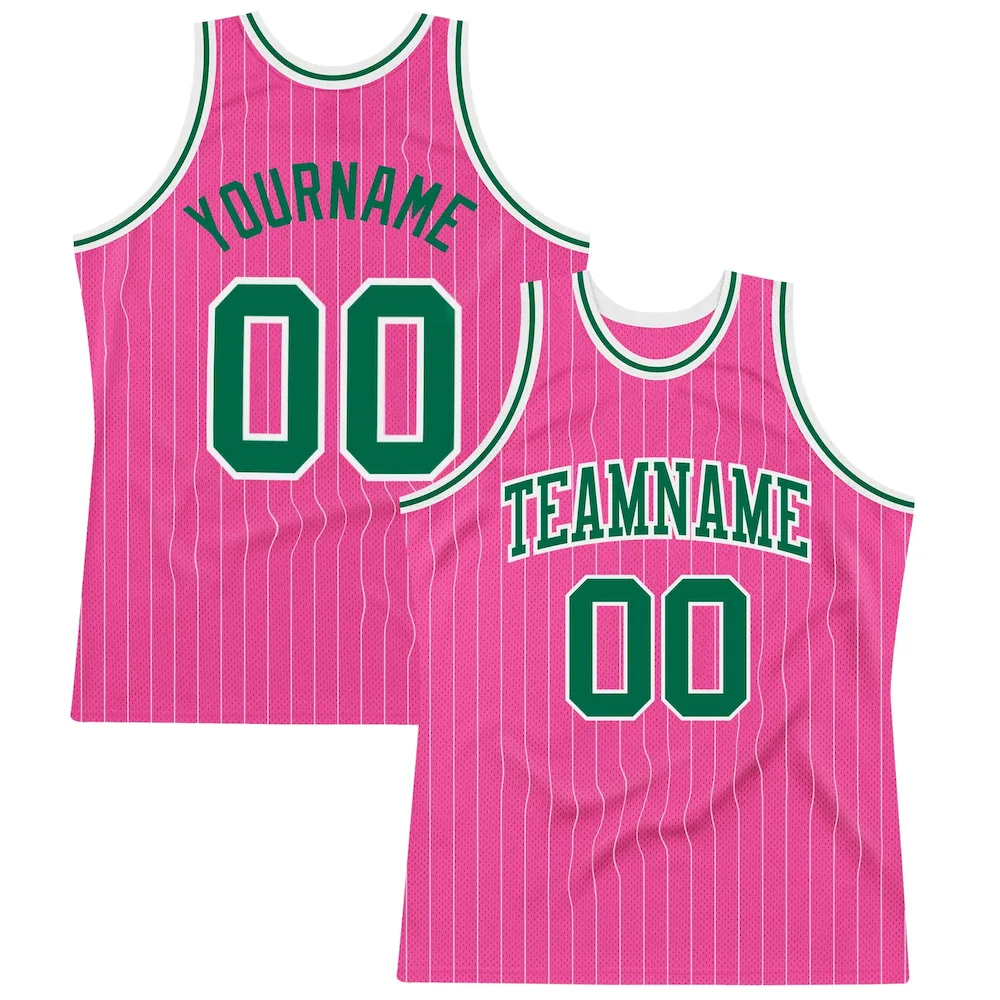 Custom Pink White Pinstripe Kelly Green-White Authentic Basketball Jersey