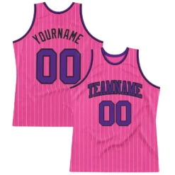 Custom Pink White Pinstripe Purple-Black Authentic Basketball Jersey
