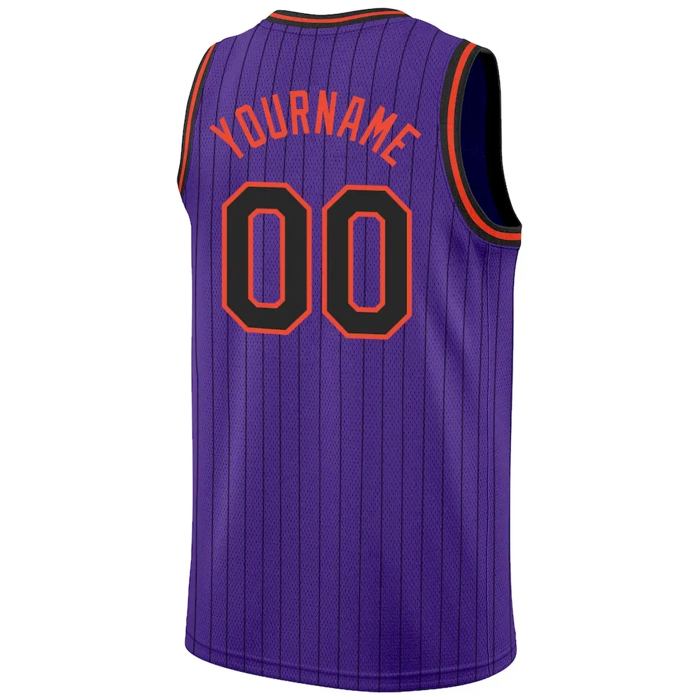 Custom Purple Black Pinstripe Black-Orange Authentic Basketball Jersey