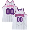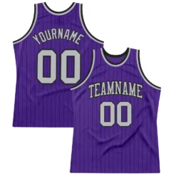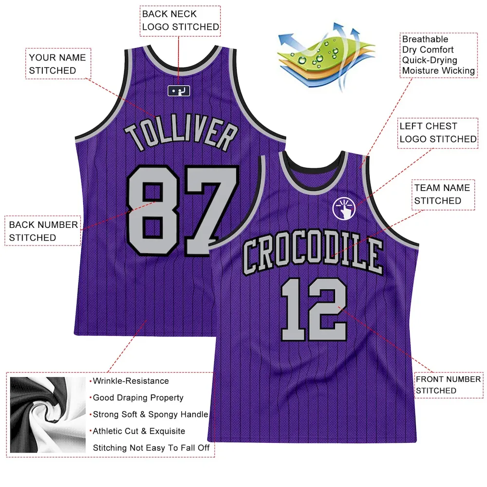Custom Purple Black Pinstripe Gray Authentic Basketball Jersey