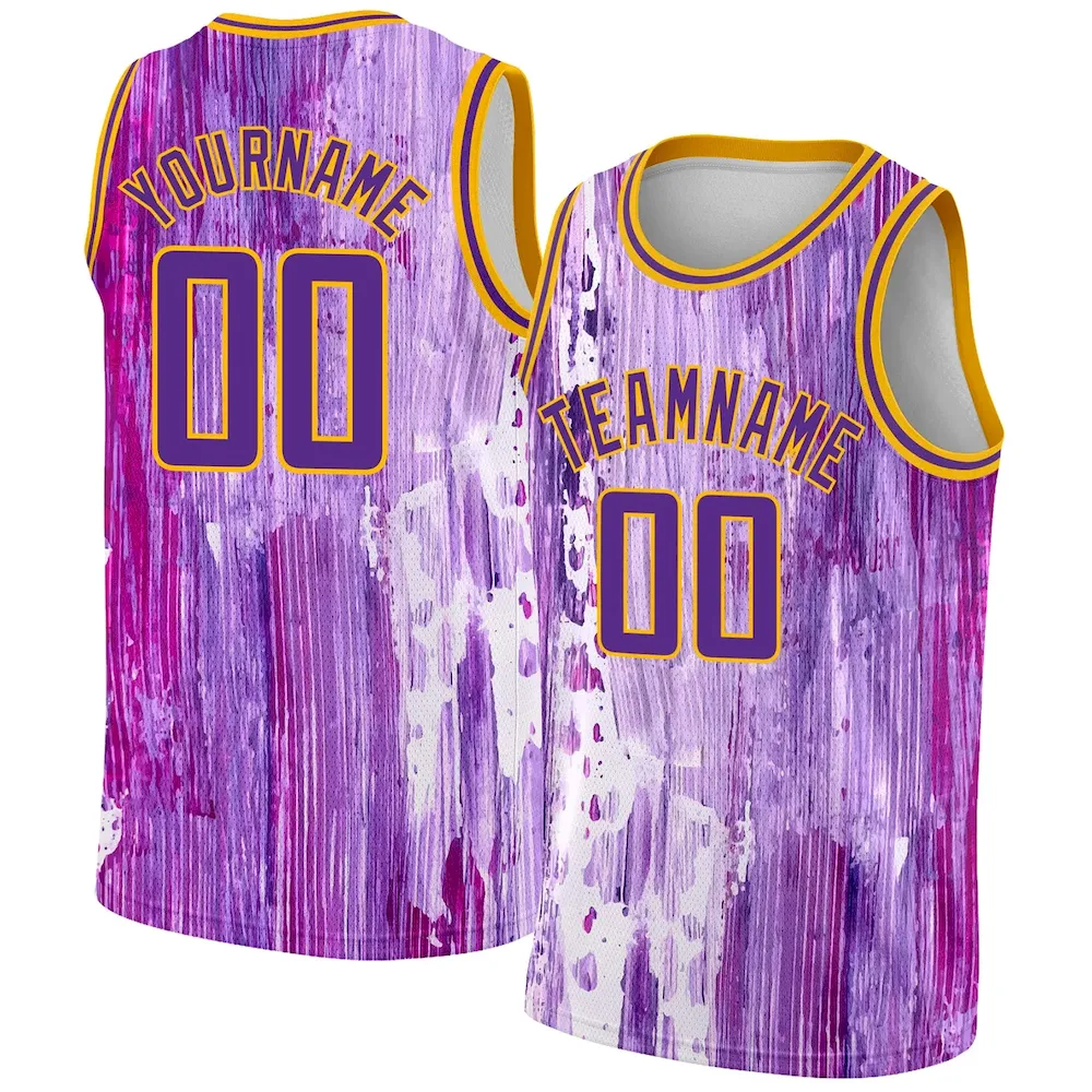 Custom Purple Gold 3D Pattern Design Abstract Liquid Watercolor Style Authentic Basketball Jersey