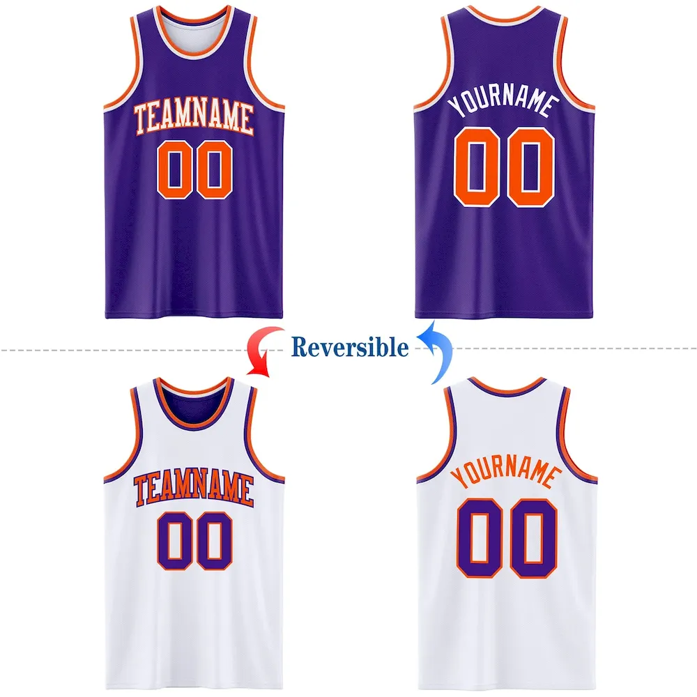 Custom Purple Orange-White Reversible Double Side Basketball Jersey