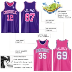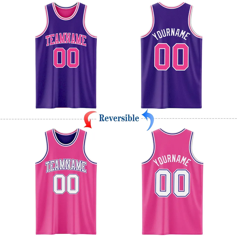 Custom Purple Pink-White Reversible Double Side Basketball Jersey