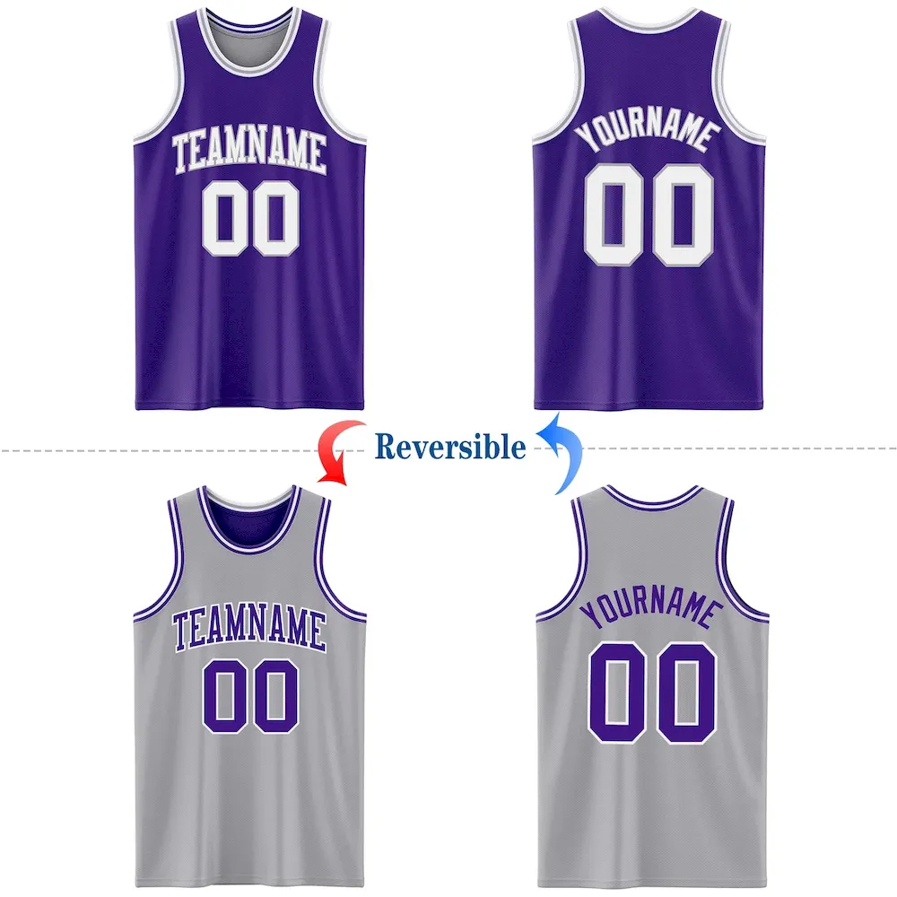Custom Purple White-Gray Reversible Double Side Basketball Jersey