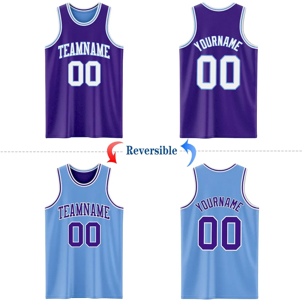 Custom Purple White-Light Blue Reversible Double Side Basketball Jersey