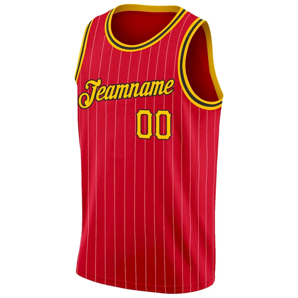 Custom Red Gold Pinstripe Gold-Black Authentic Basketball Jersey