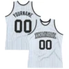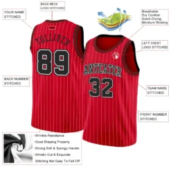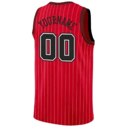 Custom Red White Pinstripe Black-White Authentic Basketball Jersey