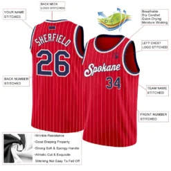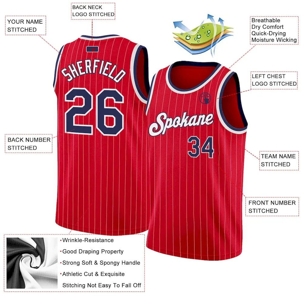 Custom Red White Pinstripe Navy-White Authentic Basketball Jersey
