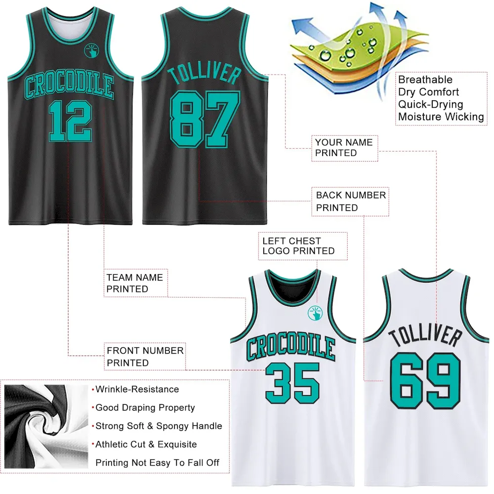 Custom Reversible Black Aqua Double Side Basketball Jersey