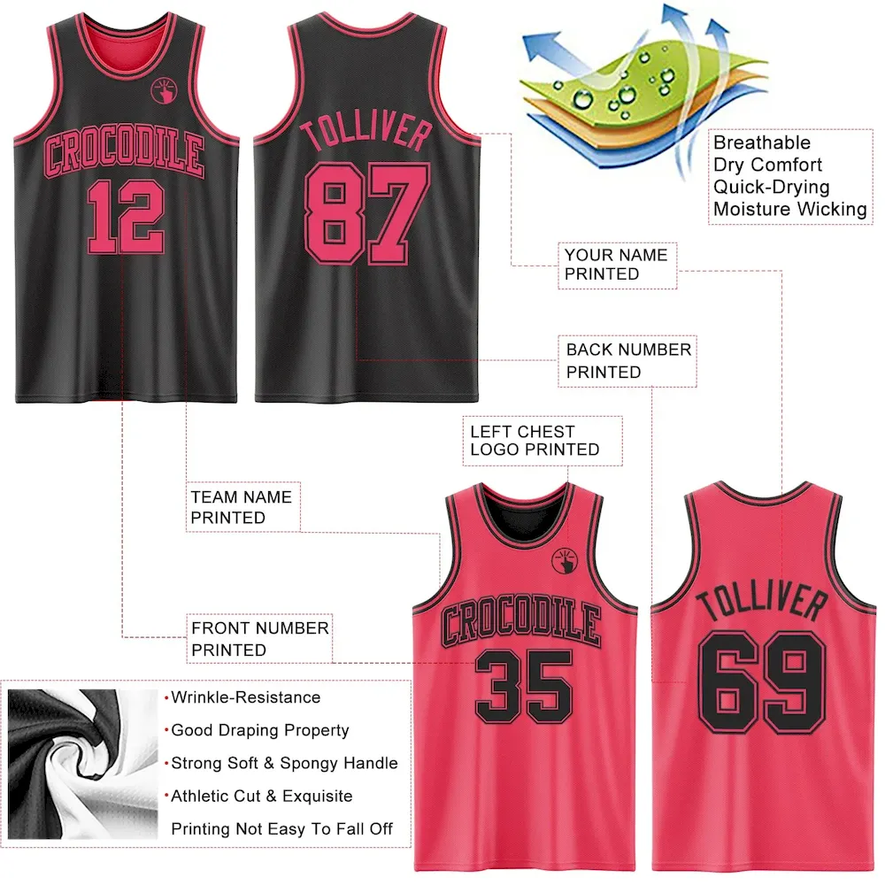 Custom Reversible Black Neon Pink Double Side Basketball Jersey