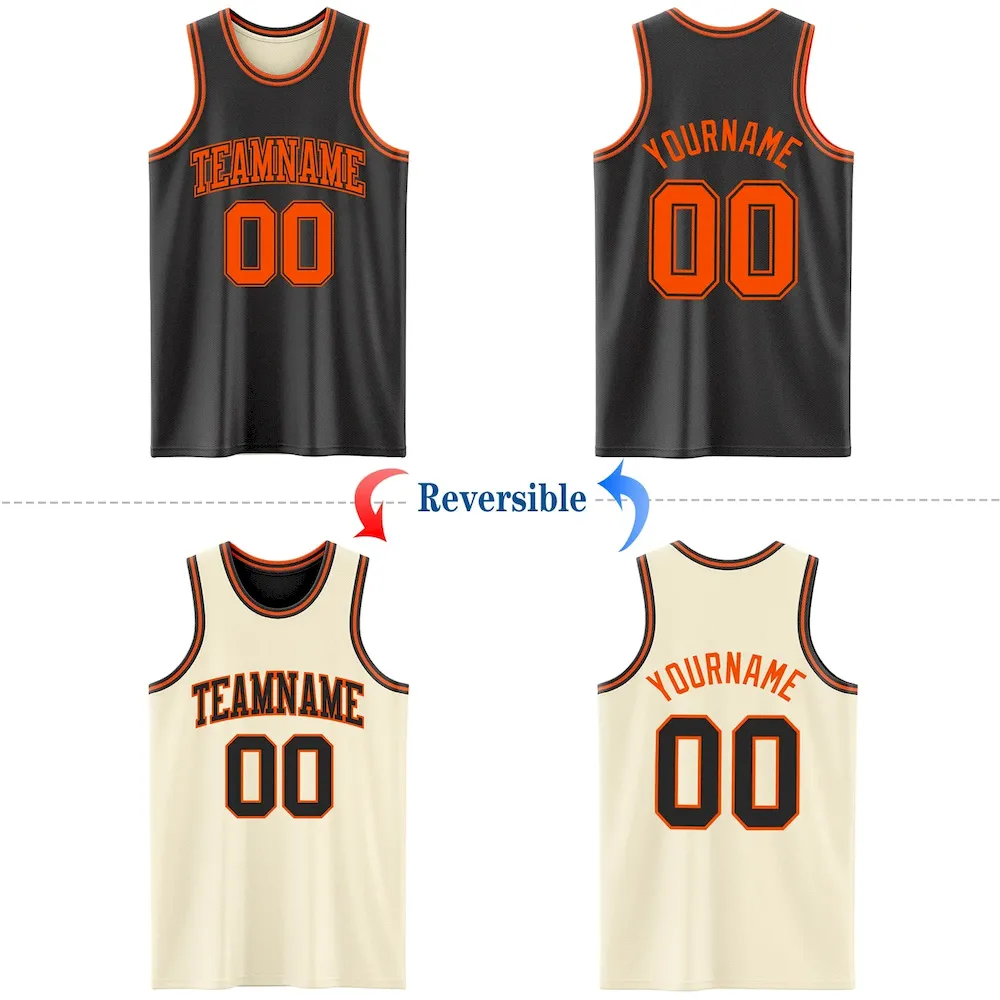 Custom Reversible Black Orange Double Side Basketball Jersey