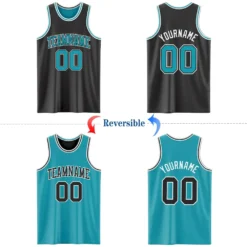 Custom Reversible Black Teal-White Double Side Basketball Jersey