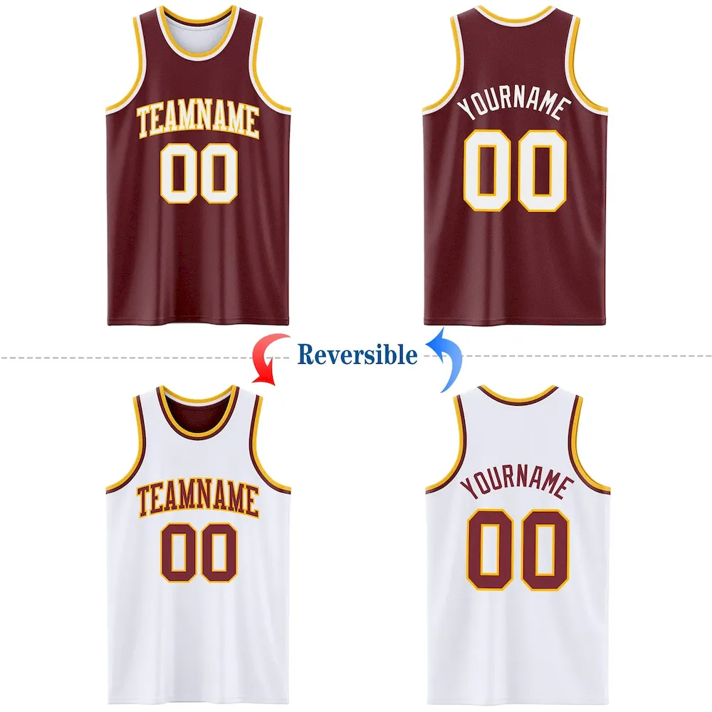 Custom Reversible Burgundy White-Gold Double Side Basketball Jersey