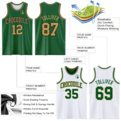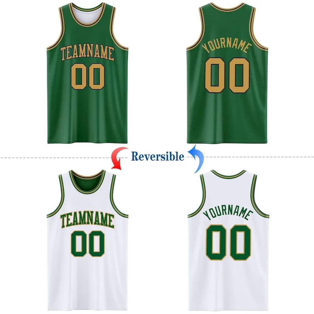 Custom Reversible Kelly Green Old Gold-Black Double Side Basketball Jersey