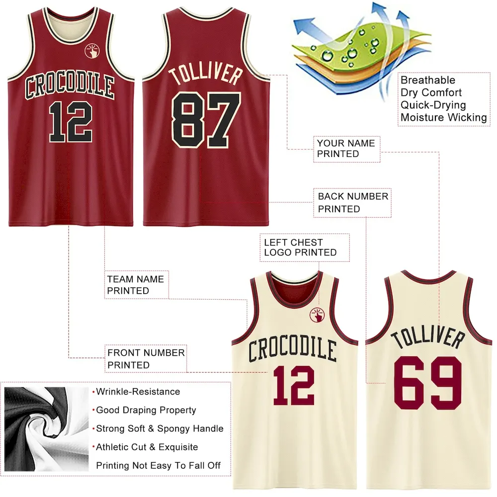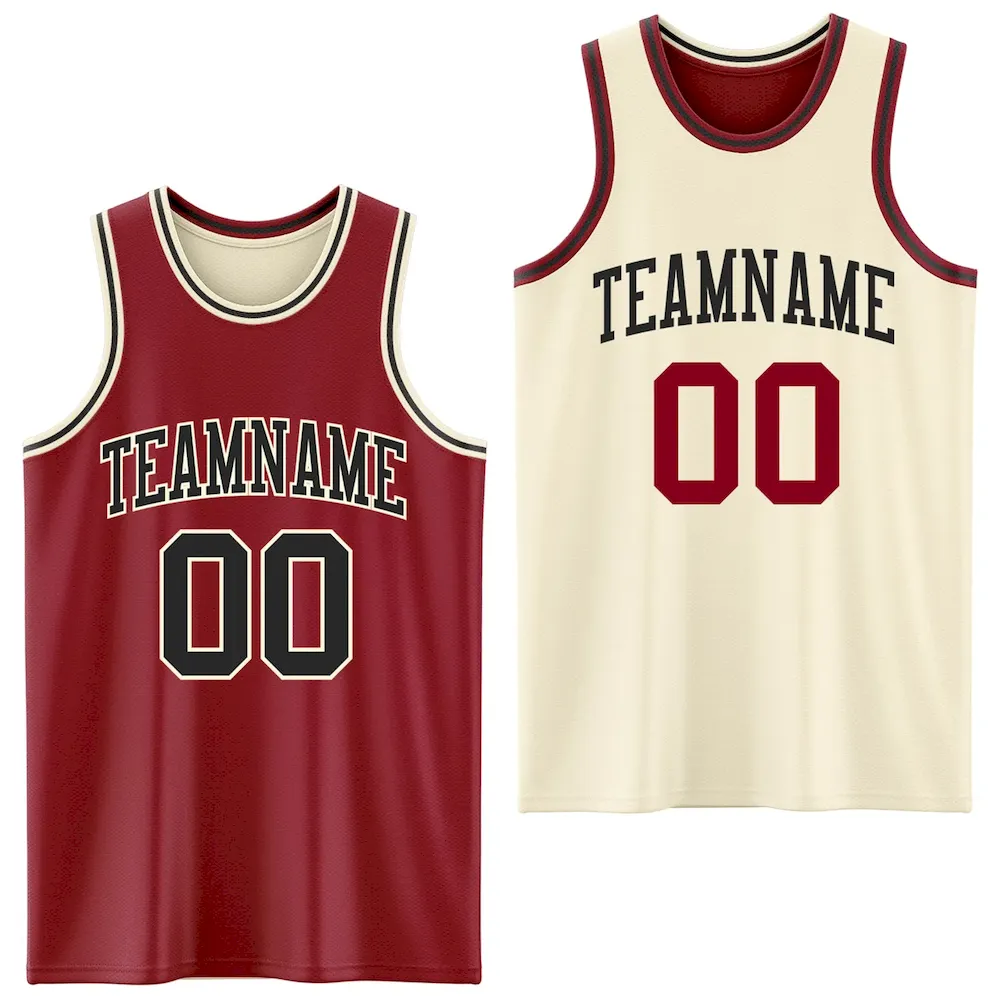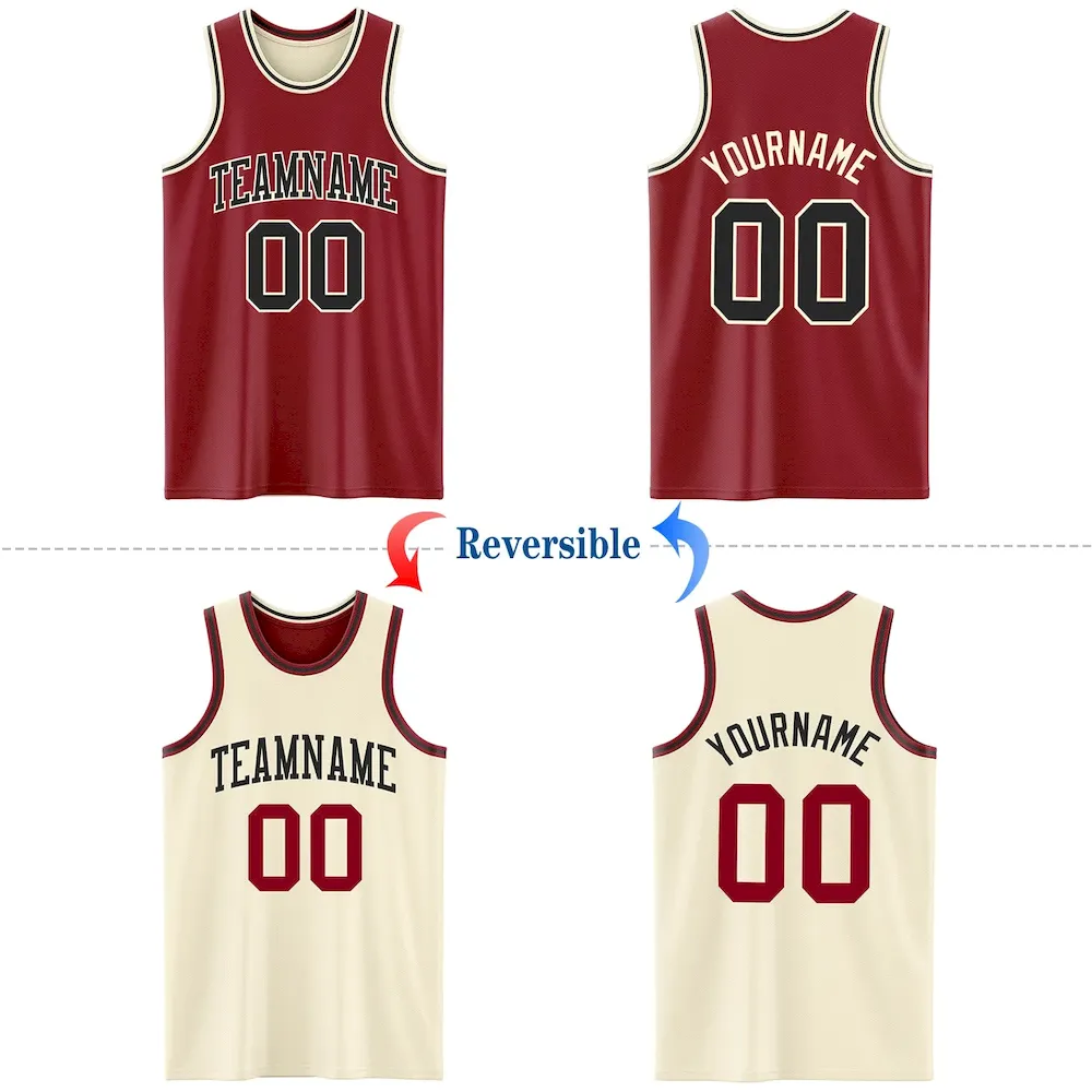 Custom Reversible Maroon Black-Cream Double Side Basketball Jersey
