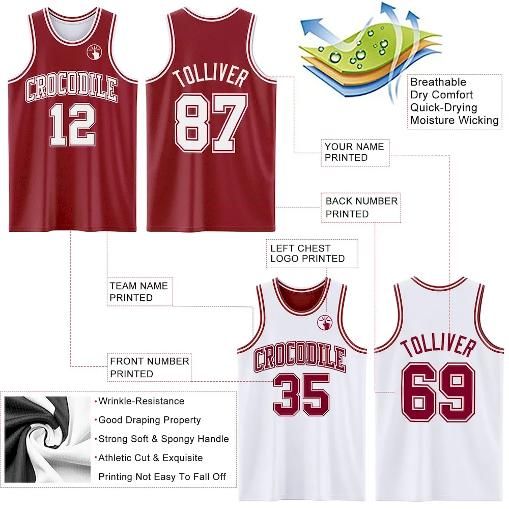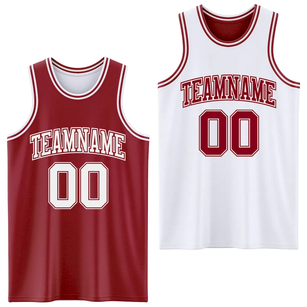 Custom Reversible Maroon White Double Side Basketball Jersey