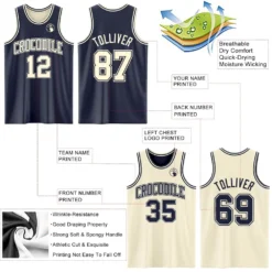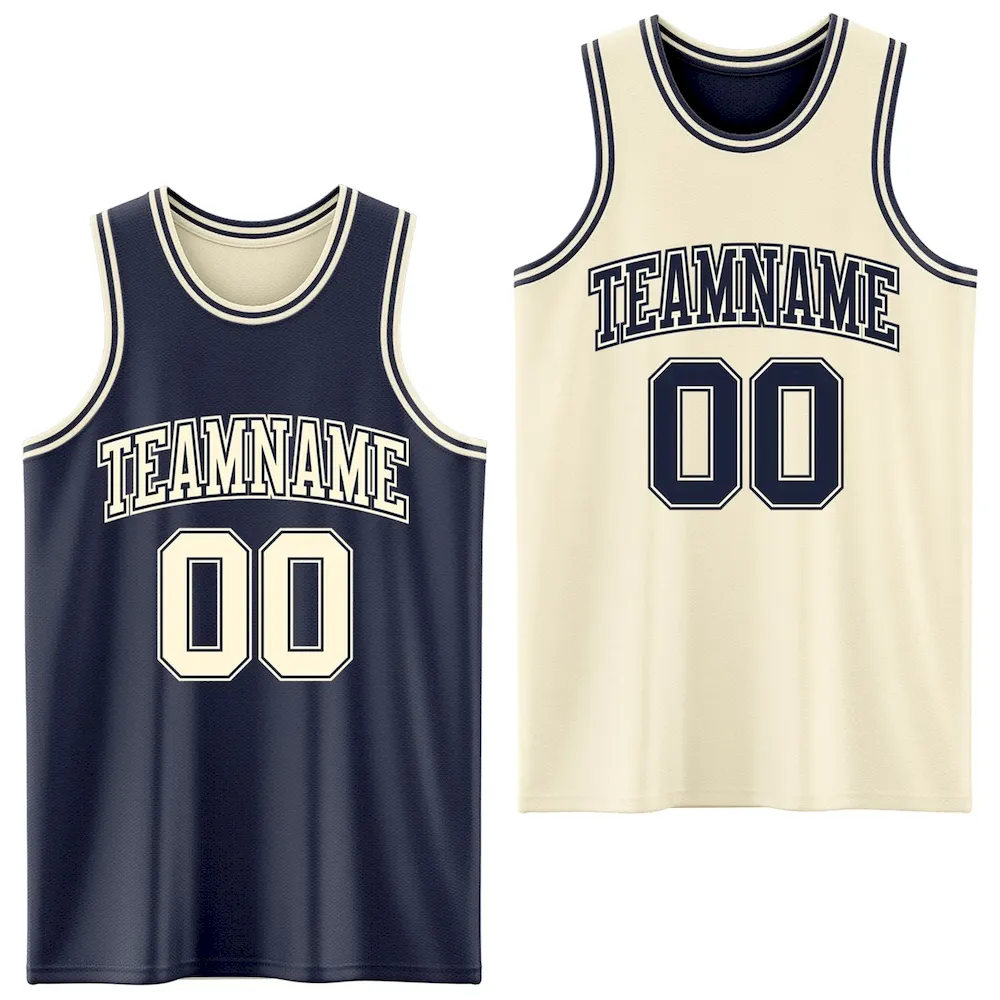Custom Reversible Navy Cream Double Side Basketball Jersey