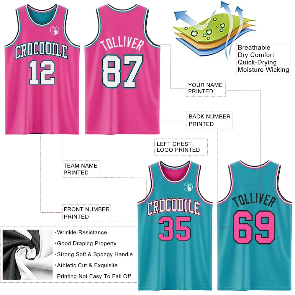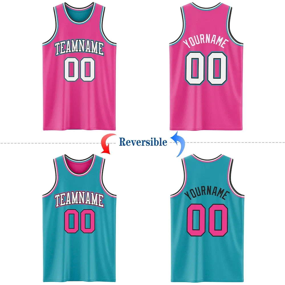 Custom Reversible Pink Black-Teal Double Side Basketball Jersey