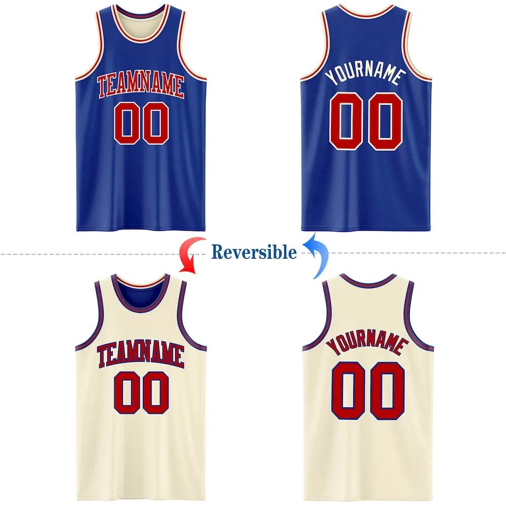 Custom Reversible Royal Red-Cream Double Side Basketball Jersey