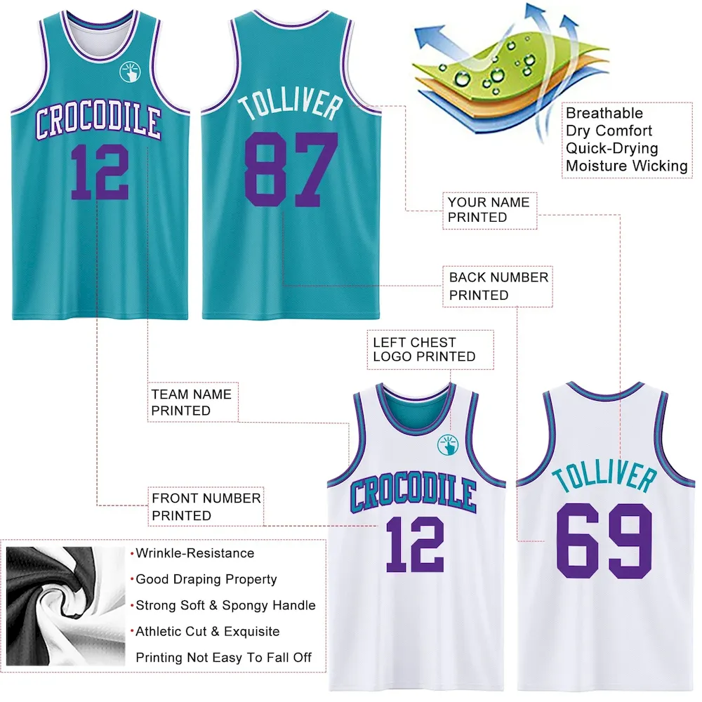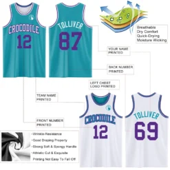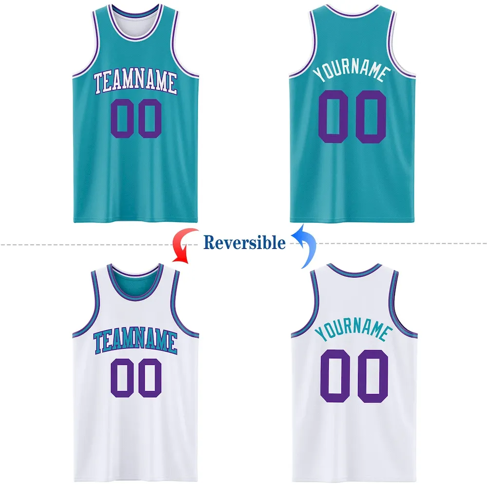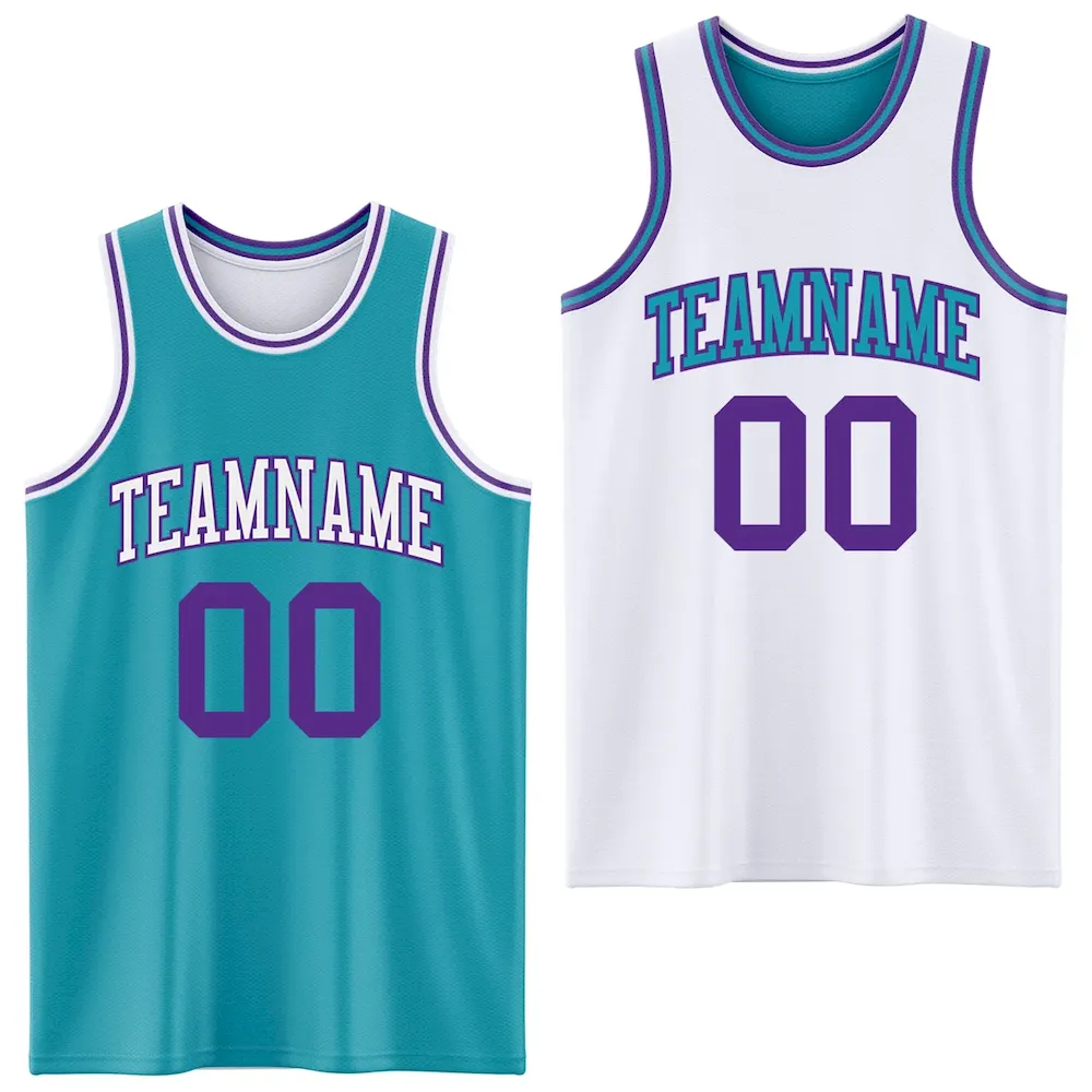 Custom Reversible Teal Purple-White Double Side Basketball Jersey