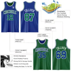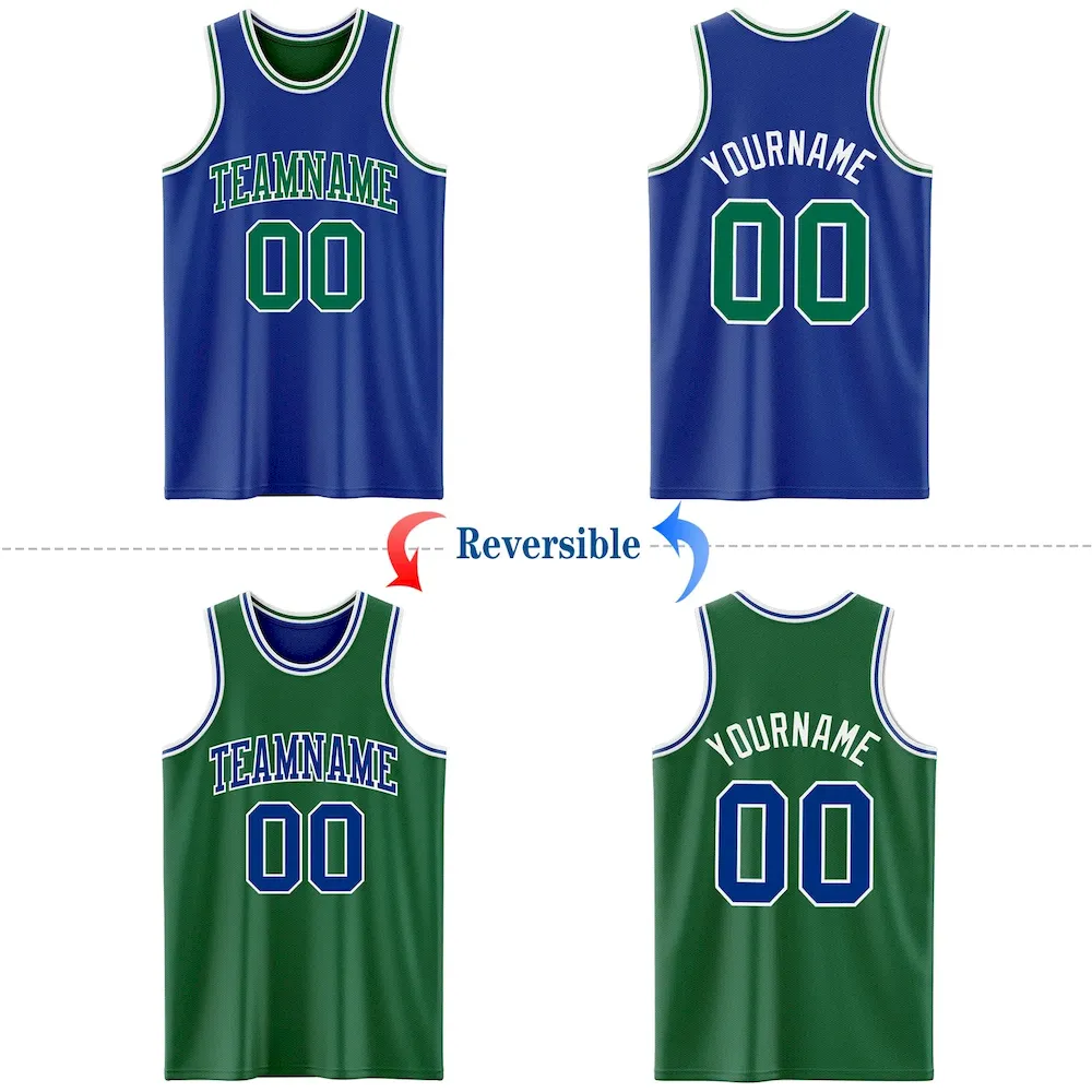 Custom Royal Kelly Green-White Reversible Double Side Basketball Jersey