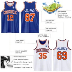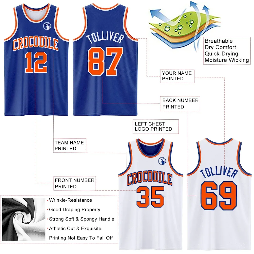 Custom Royal Orange-White Reversible Double Side Basketball Jersey