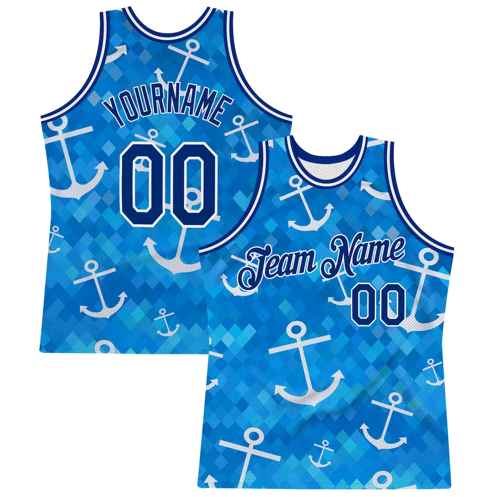 Custom Royal Royal-White 3D Pattern Design Anchors Authentic Basketball Jersey