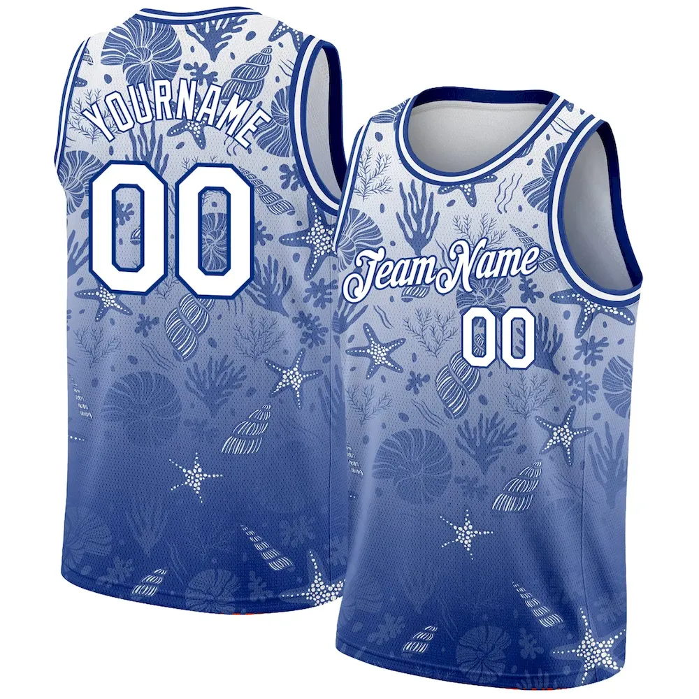 Custom Royal White 3D Pattern Design Seashells And Starfishes Authentic Basketball Jersey