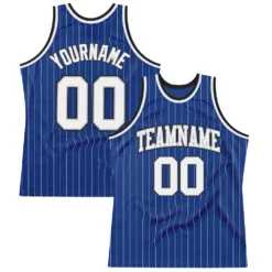 Custom Royal White Pinstripe White Gray-Black Authentic Basketball Jersey