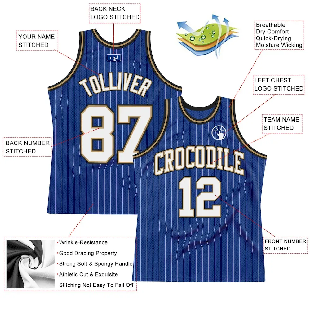 Custom Royal White Pinstripe White Old Gold-Black Authentic Basketball Jersey