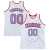 Custom Royal White Pinstripe White-Red Authentic Basketball Jersey