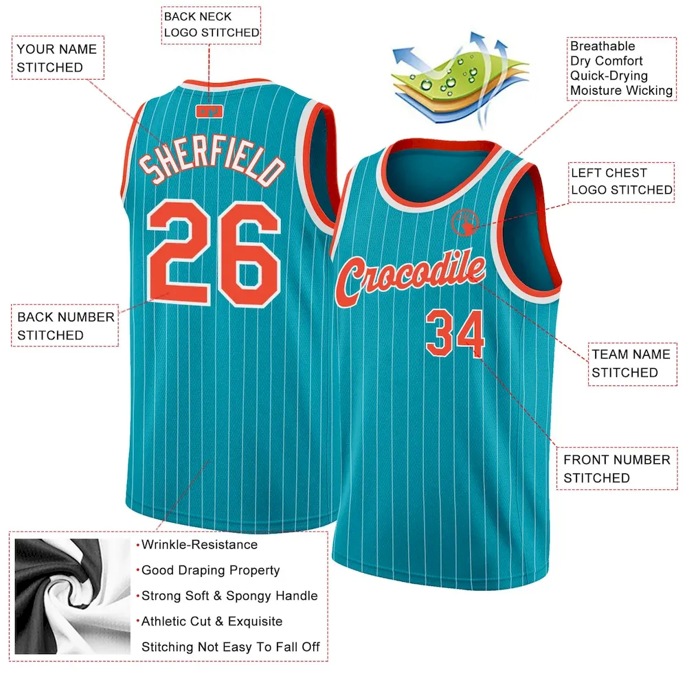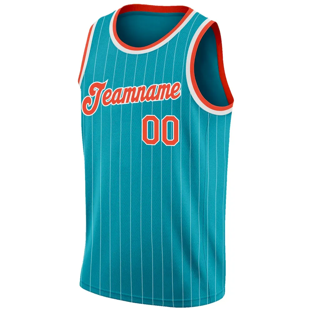 Custom Teal White Pinstripe Orange-White Authentic Basketball Jersey