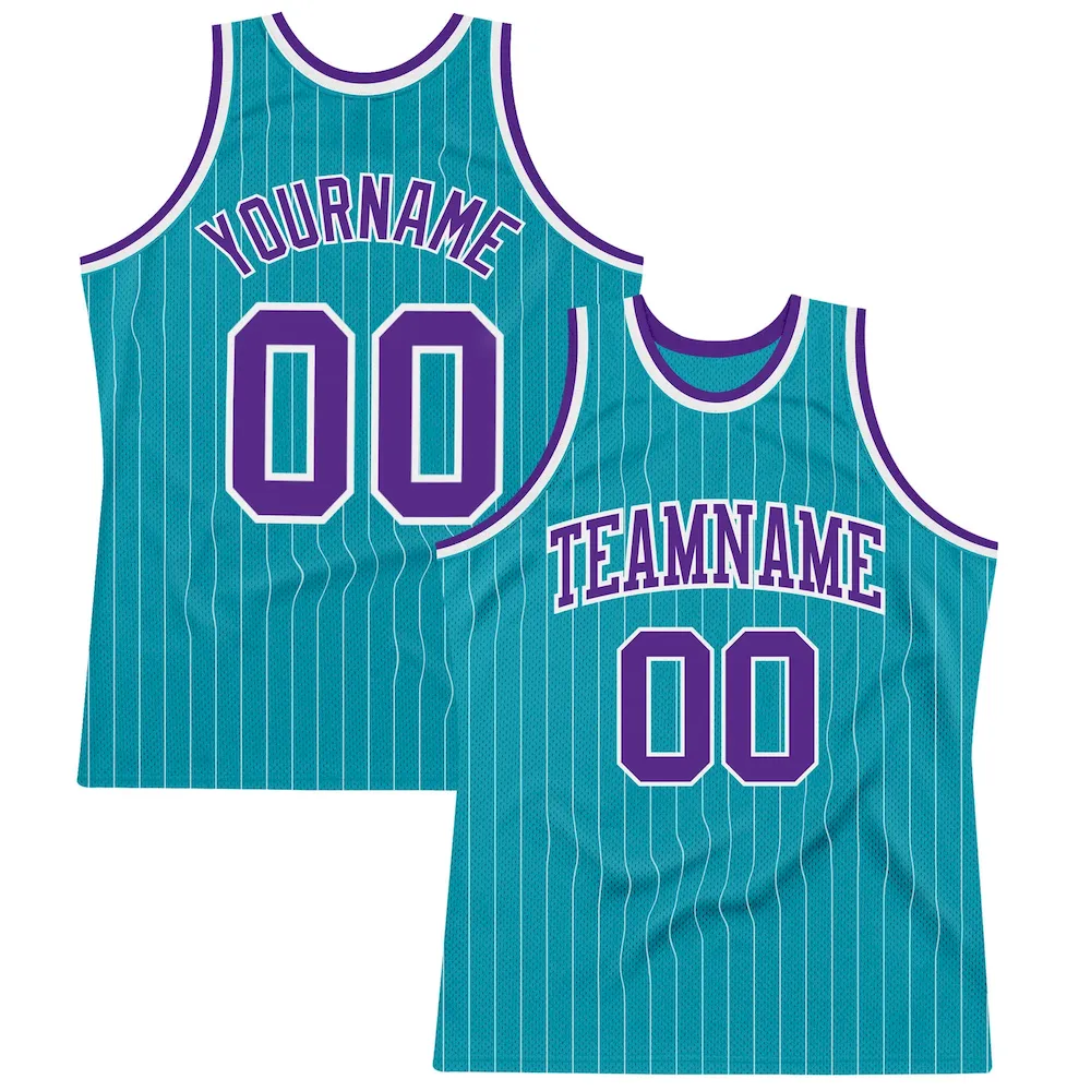 Custom Teal White Pinstripe Purple Authentic Basketball Jersey