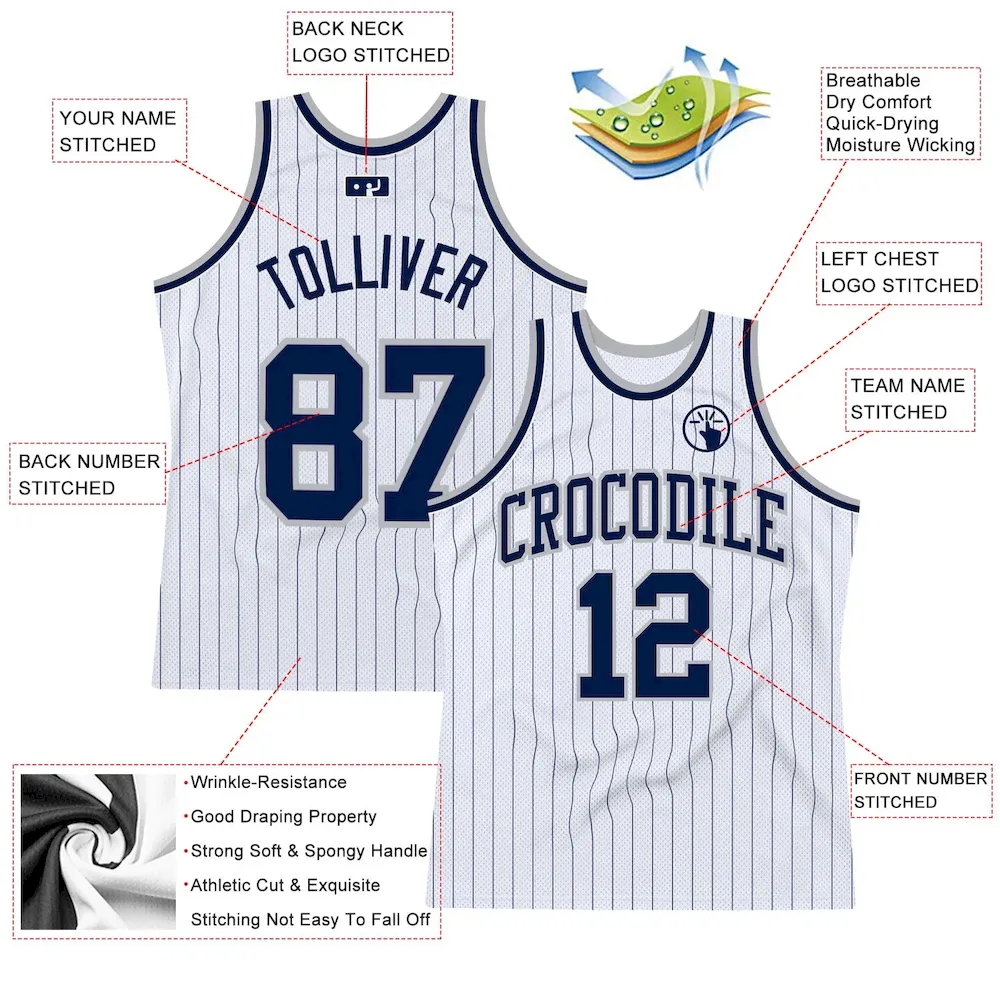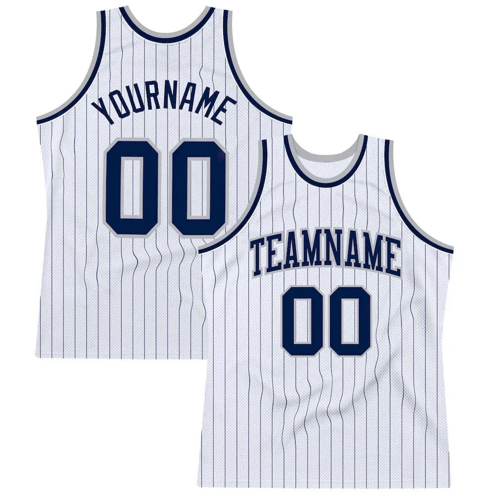 Custom White Navy Pinstripe Navy-Gray Authentic Basketball Jersey