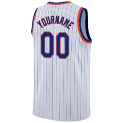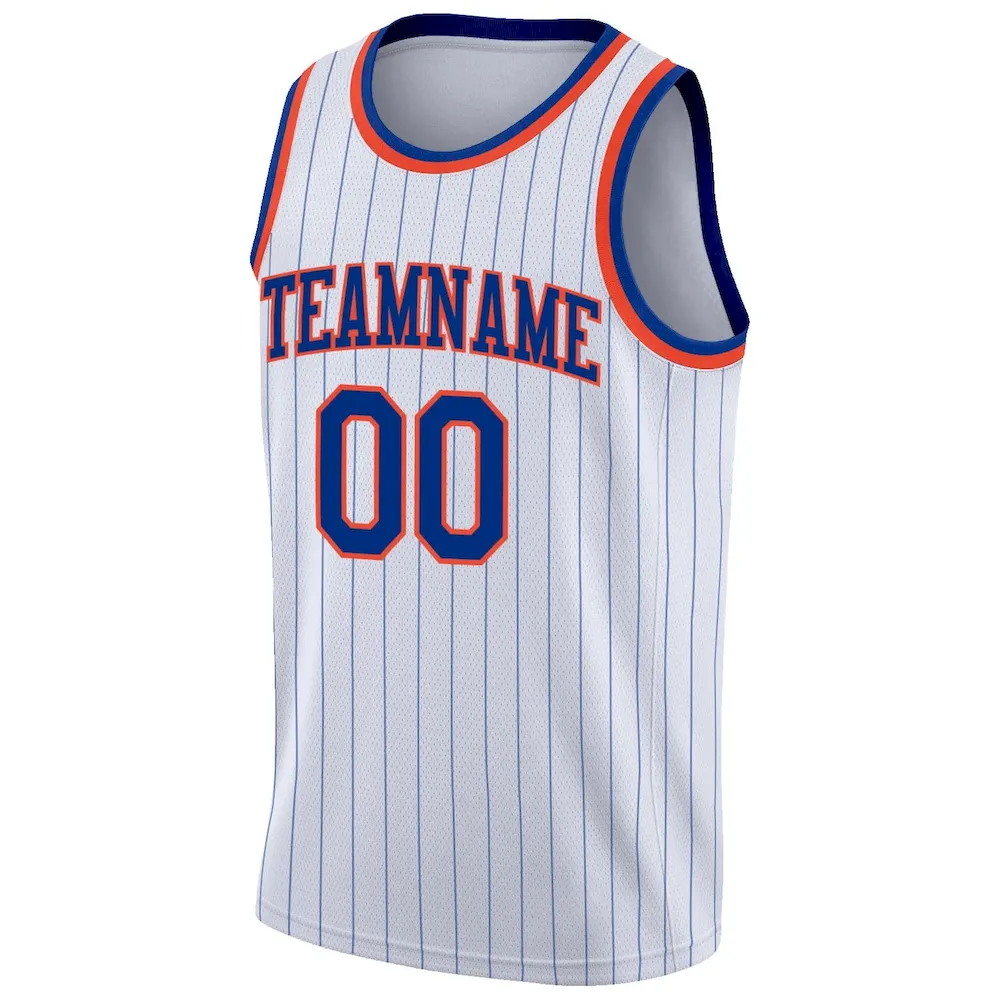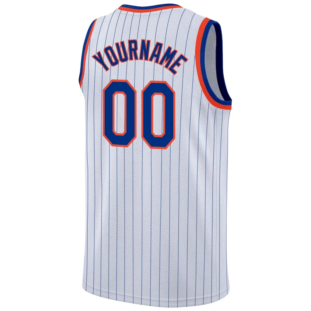 Custom White Royal Pinstripe Royal-Orange Authentic Basketball Jersey